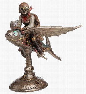 Steampunk Flying Fish Rider Bronze Figurine (By Veronese)