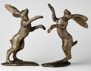 Hares Boxing Small Bronze Sculpture by Michael Simpson (Richard Cooper)