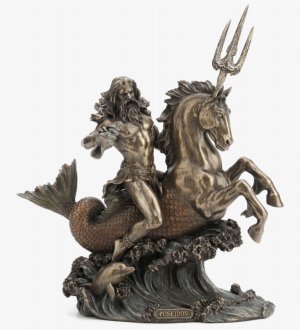 Poseidon God of the Sea Riding Sea Horse Bronze Figurine 27 Cm