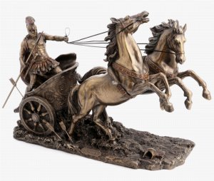 Achilles in 2 Horse Chariot Bronze Statue - Greek Hero (37 Cm)