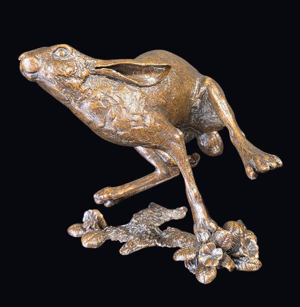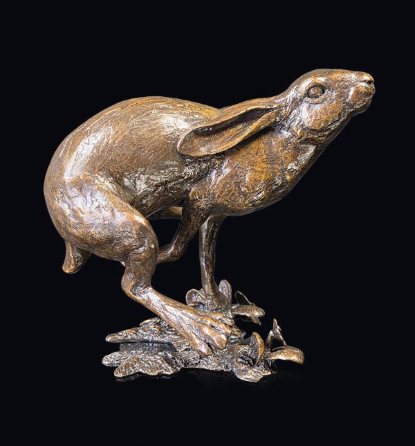 Dramatic sculpture showing a running hare by Michael Simpson. Limited edition of just 75!
