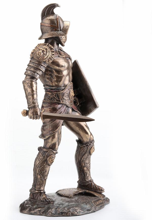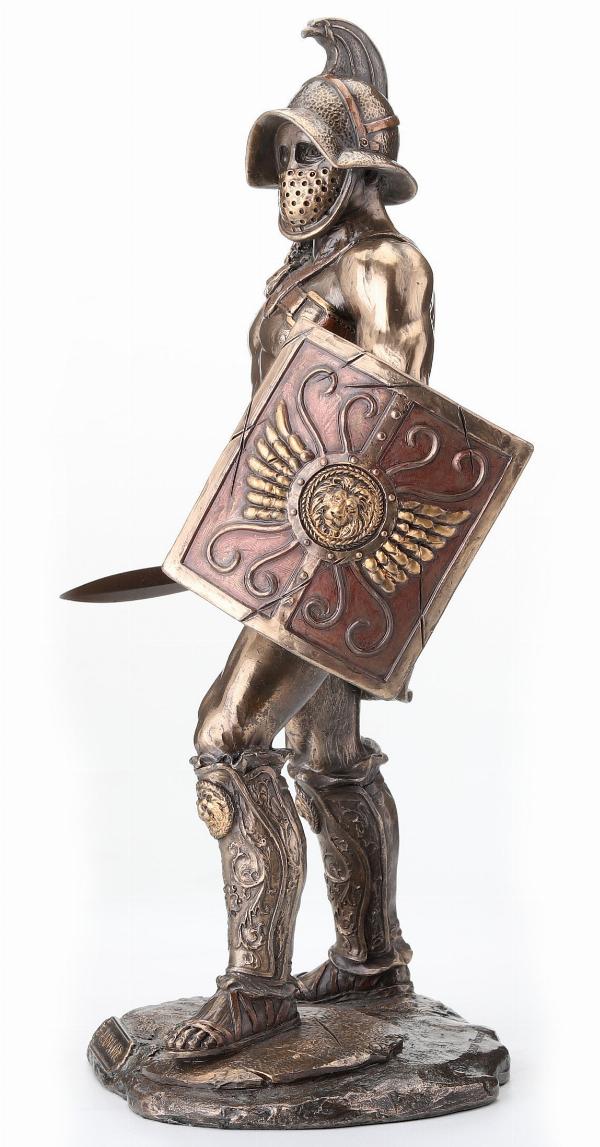 Murmillo Gladiator Spartacus - Roman Wielding Scutum and Gladius - 26cm Tall Bronze Figurine