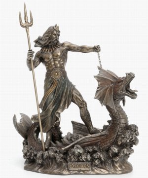 Poseidon God of the Sea Bronze Figurine 23 Cm