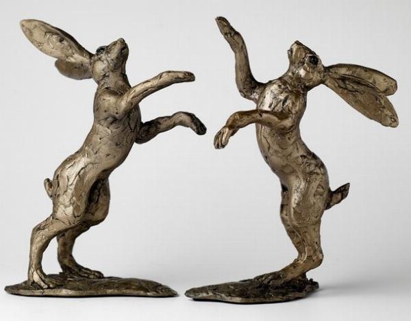 Pair of Boxing Hares Figurines Jonny Sanders