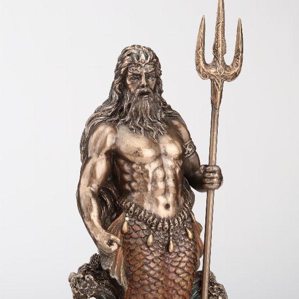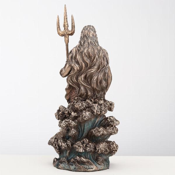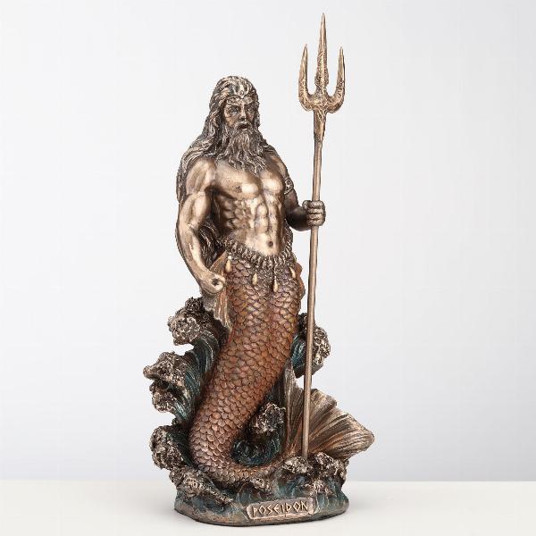 Introducing the Poseidon God of the Sea figurine, a stunning medium-sized bronze resin masterpiece capturing the might of the ancient Greek deity. Meticulously cast with intricate colored details and a polished bronze finish, this high-quality figurine showcases Poseidon wielding his iconic trident with regal authority. Securely packaged to ensure safe delivery, its an ideal gift for mythology enthusiasts and collectors alike. Elevate any space with the timeless allure of Poseidon, and let the power of the sea inspire awe and admiration.
