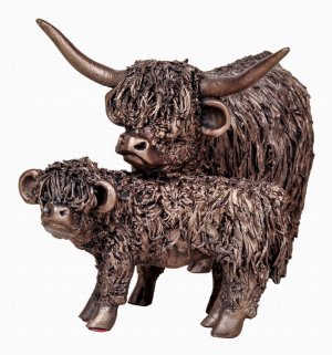 Highland Cow and Calf Standing (Medium) by Veronica Ballan (Frith Sculpture)