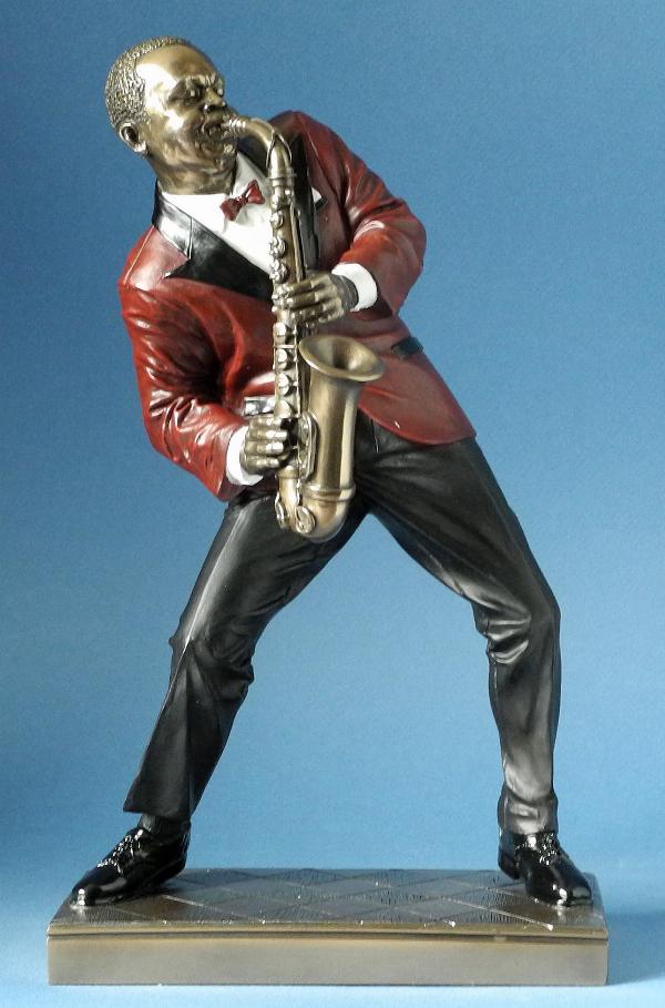 Figurine showing a male saxophone player really into the music. Part of the Jazz collection set.