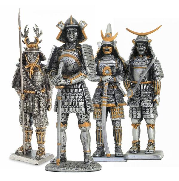 Set of 4 Samurai Warrior Pewter Figurines
