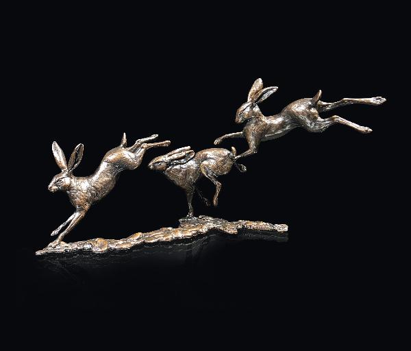 Small Hares Playing (1259) Bronze Sculpture by Dean Kendrick (Richard Cooper)