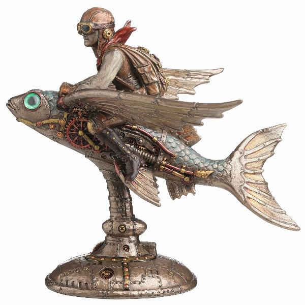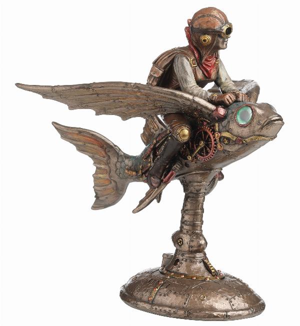 Steampunk Flying Fish Rider Bronze Figurine (By Veronese)