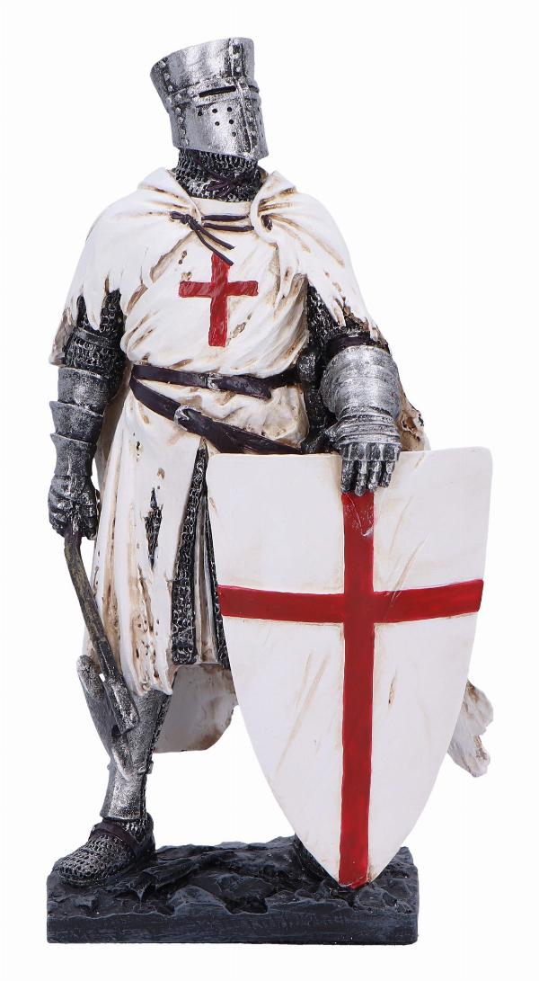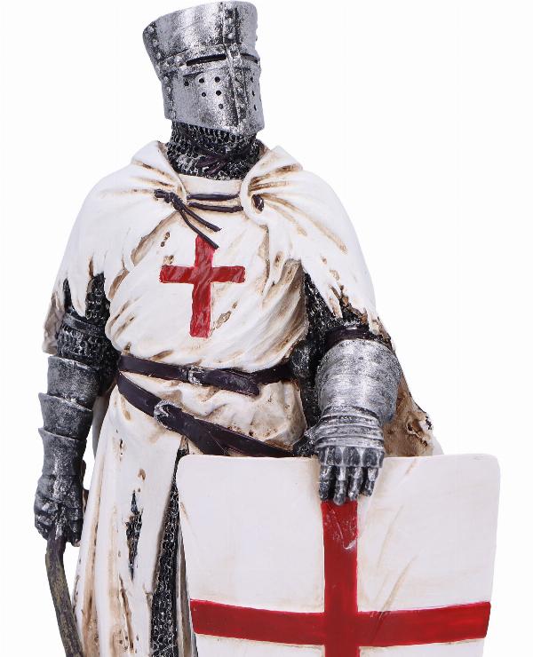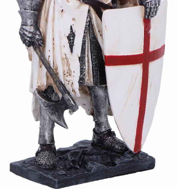 Take A Stand Templar Knight Figurine Add strength and pride to your collection with this striking Templar knight figurine. Capturing the knight in a determined pose, with eyes raised and stance strong, it symbolizes bravery and the noble spirit of the Templar order. Made from high-quality resin and hand-painted with precision, this figurine features the knights iconic white mantle with a red cross, holding an axe and resting his shield. Whether for a historical or fantasy-themed collection, it brings noble strength to any space. Packaged in a gift box, this figurine is the perfect gift for collectors or history enthusiasts. Bring the valor of the Templar knights into your home with Take A Stand, a truly inspiring piece.
